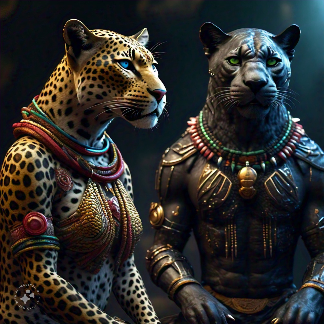 D'Asha Mbabazi - Young queen and protector of Gaarreen Ji'aa, recipient of the leopard Blessing from Bastaphrꜵ. Known for her golden eyes and uncanny rapport with animals, she commands both authority and affection in the Rwenzori highlands. D'Asha is trained in archery, martial arts and statecraft; her Æthbarynite suit grants her near-impervious defensive capabilities. Publicly visible, politically savvy, and privately driven by duty, she embodies a new generation of monarchs who merge tradition with adaptive governance.