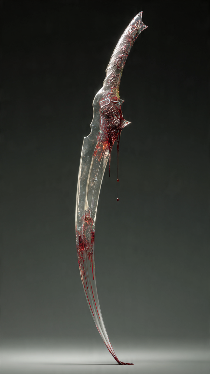 Appearance: A silver blade that weeps red tears, its edge forever damp with blood that is not its own.