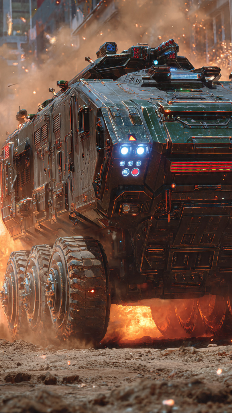 - Shock-absorbing, ruggedized wheels (or treads for heavy variants) allow stable movement across scorched deserts, crater fields, or alien terrain under continuous bombardment.